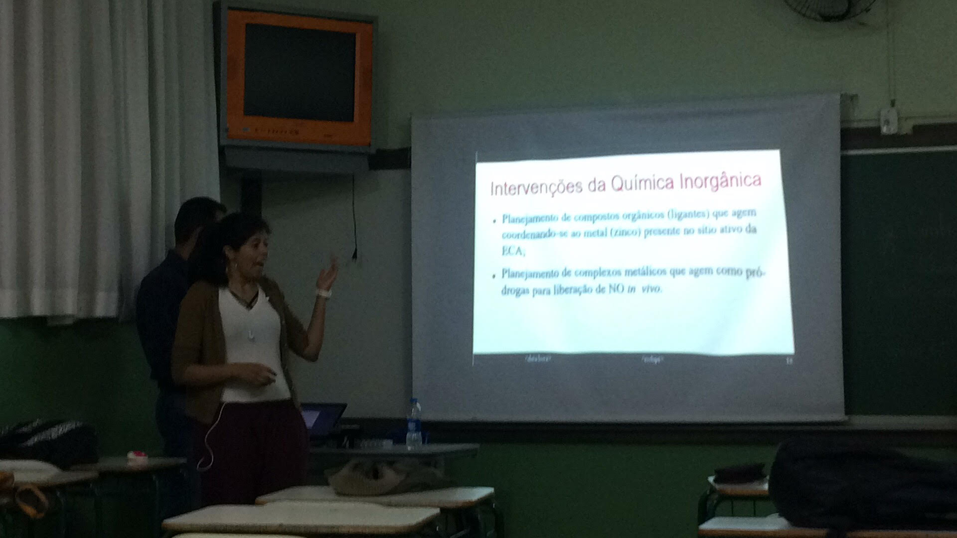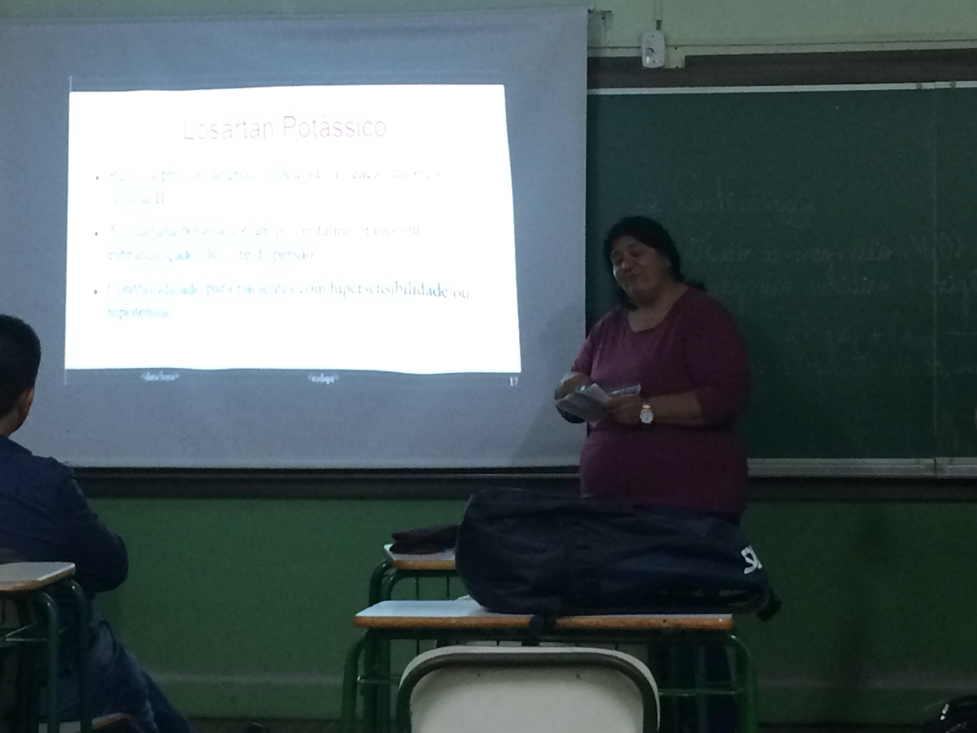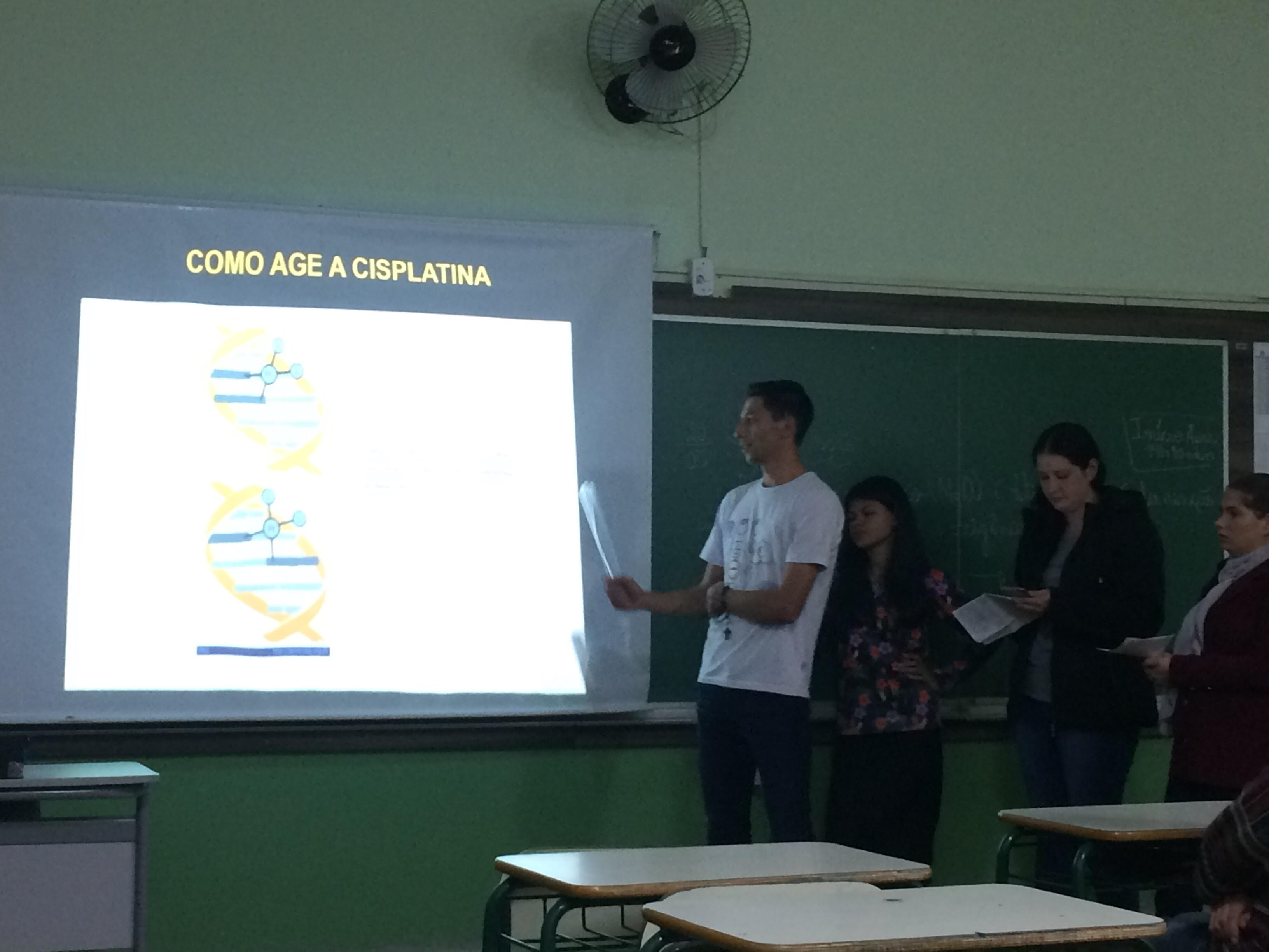 Alunos do 1º Ano, do curso Técnico em Química, da modalidade Subsequente (noturno), elaboraram seminários na disciplina de Química Inorgânica, com temas previamente selecionados pela professora: “A Química Inorgânica na terapia do Câncer e A Química Inorgânica no Planejamento de Fármacos usados no controle da Hipertensão”.