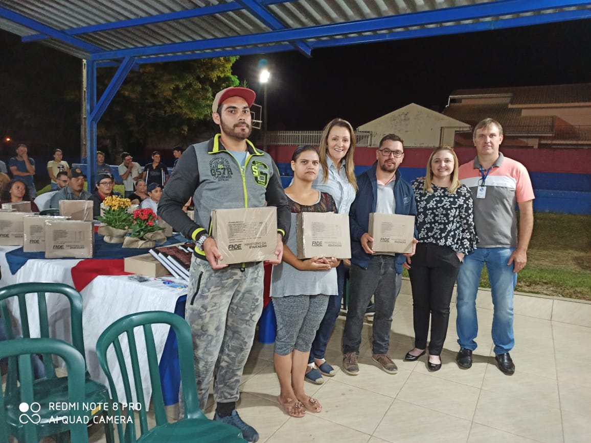 Na noite de ontem (12), a entrega foi realizada no CEEBJA Pinhão onde, o Diretor professor Cláudio Francesconi com toda sua equipe fizeram uma organização muito bonita.