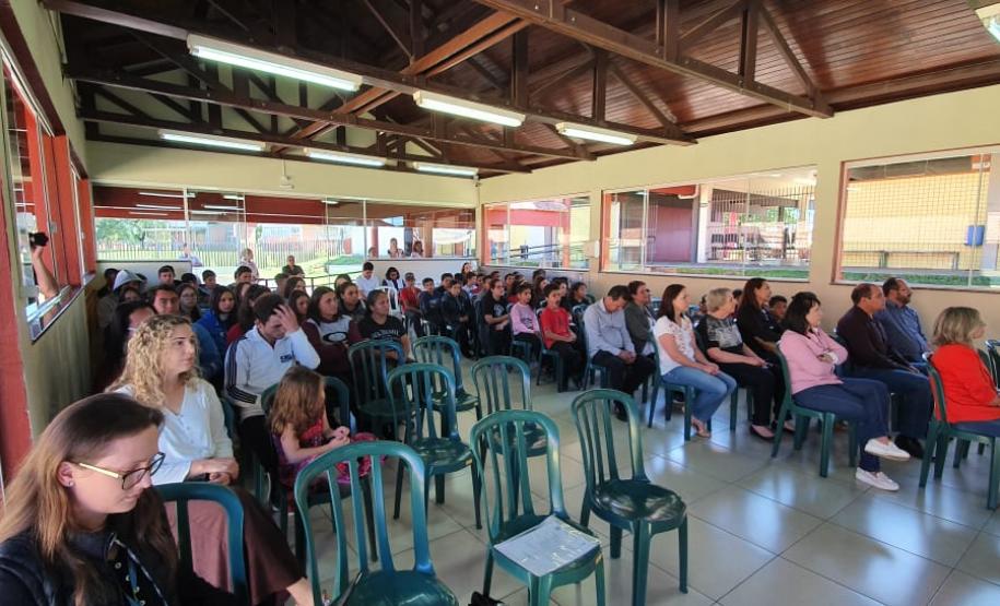 A reunião contou com a presença de toda comunidade escolar, bem como, da Direção do colégio, professor Diego da Luz Nascimento Tecchio, da Diretora Auxiliar, professora Elaine Aparecida de Lima, das representantes do NRE, Chefe professora Edil Aparecida Espínola, Engenheira Aline Hermann e a Supervisora de Obras Liciane Kuspioz Chaves, e também, do fiscal da Cohapar, Engenheiro Igor Kostiuk e o representante da empresa, Sr. Carlos Henrique F. Poças.