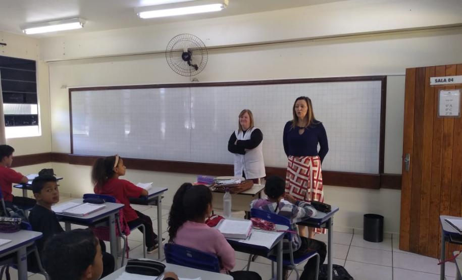 Na oportunidade, a Chefe do NRE, professora Edil, visitou a turma do 6º Ano do Ensino Fundamental.