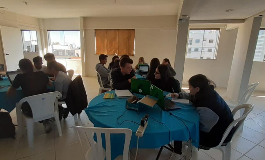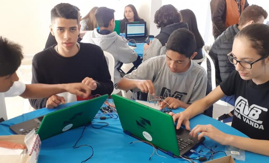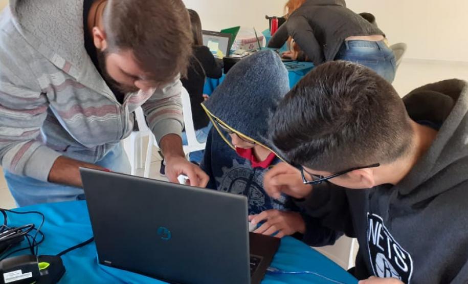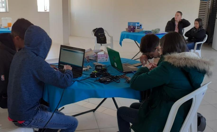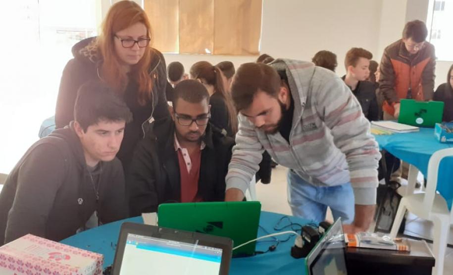 No dia 14/08, o NRE de Guarapuava recebeu os alunos para sua primeira aula e os mesmos, já colocaram a mão na massa e usaram muita criatividade para realizar a programação.