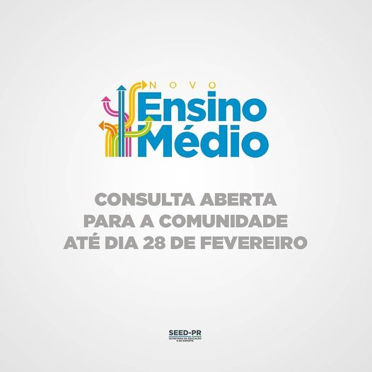 Continua aberta a Consulta à Comunidade para o Referencial Curricular do Novo Ensino Médio Paranaense até o dia 28.02.2021.