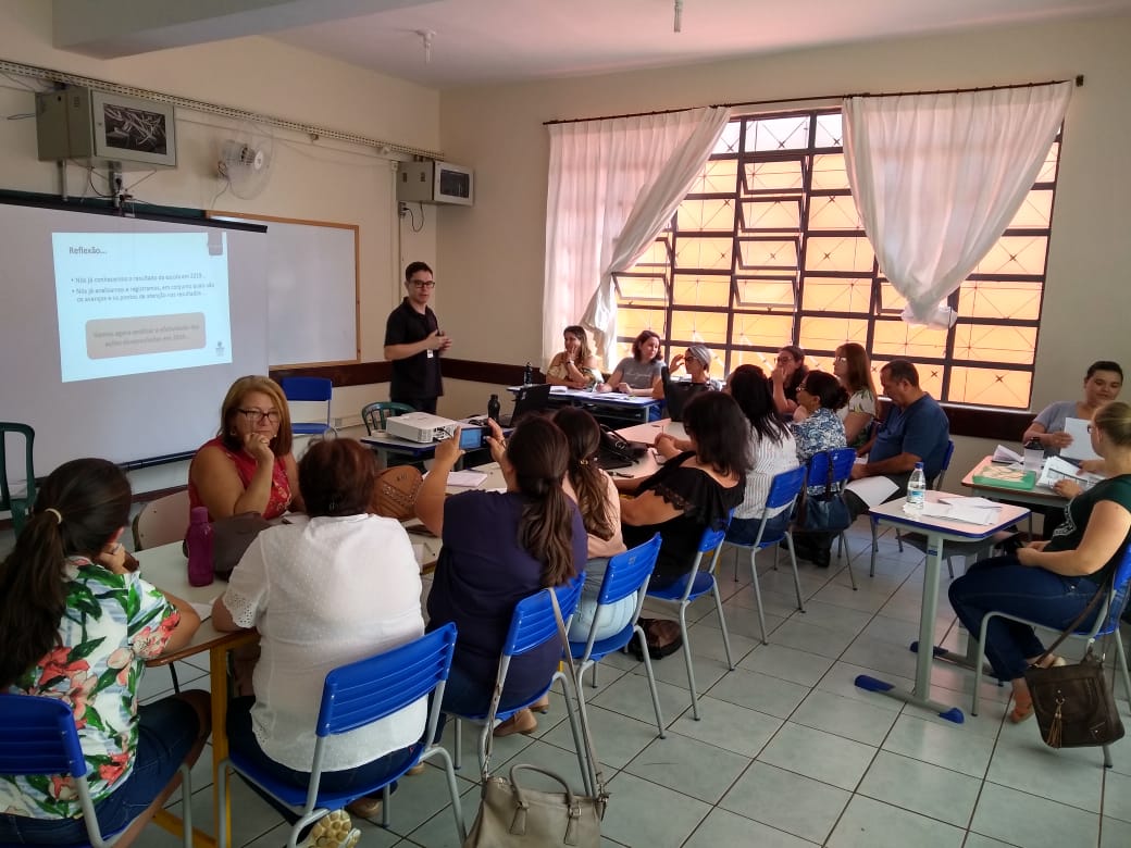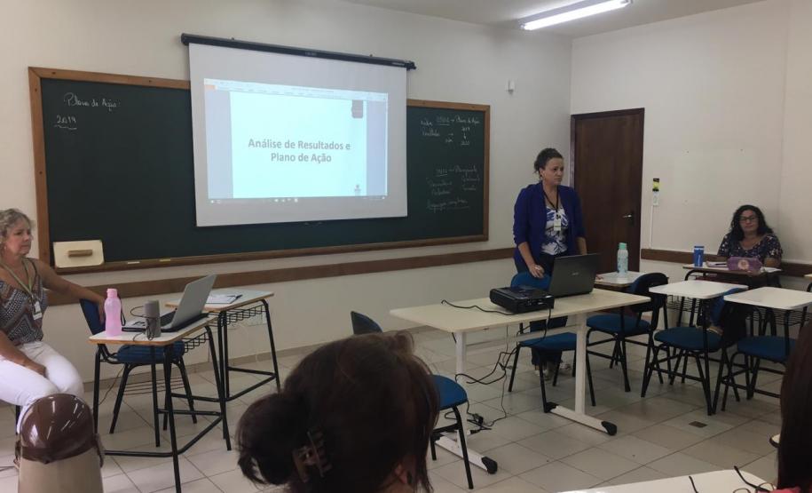 Nesse momento foram analisados os dados das escolas, considerando os resultados de 2019 para elaboração do plano de ação 2020, Plano de nivelamento, organização curricular e a implantação do Currículo da Rede Estadual Paranaense.