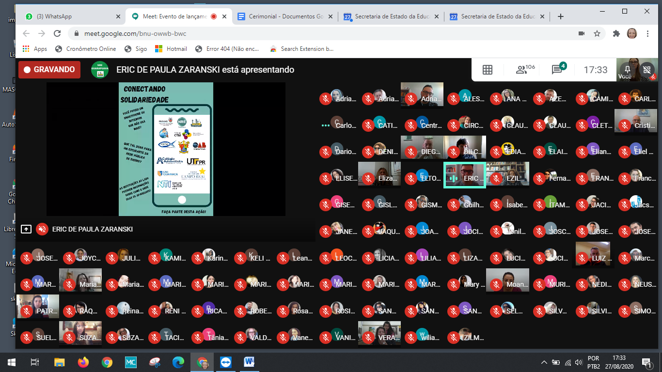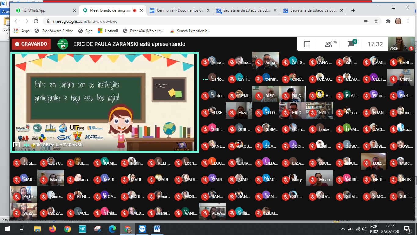 De uma forma inusitada, mas, não menos importante e especial, o lançamento do projeto foi realizado na tarde de hoje, através de Meet.