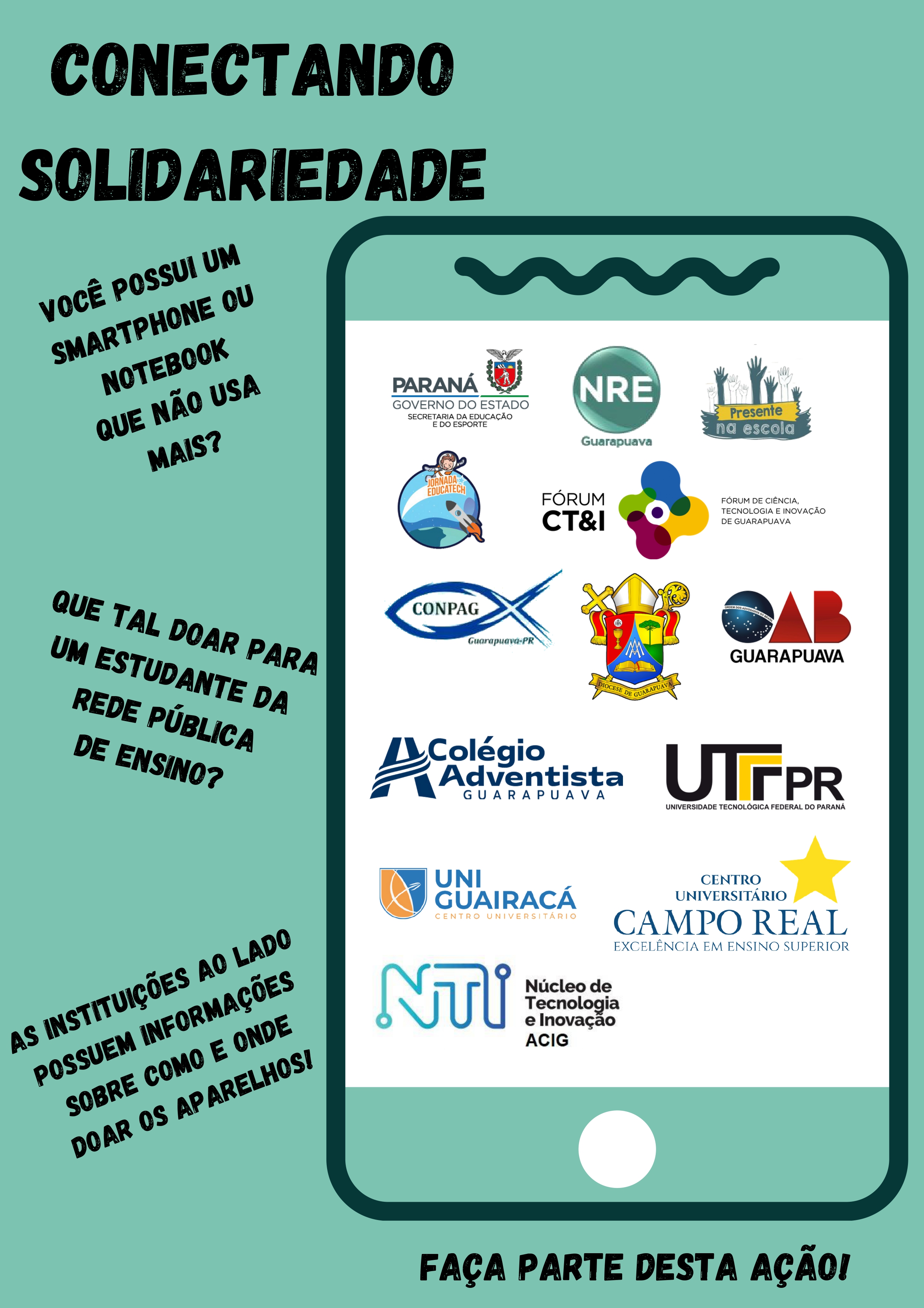 A Equipe do Núcleo Regional de Educação de Guarapuava, pensou em uma maneira de driblar as dificuldades encontradas por alunos em condições financeiras não favoráveis durante esse período de pandemia e, foi assim que surgiu o projeto “Conectando Solidariedade”.