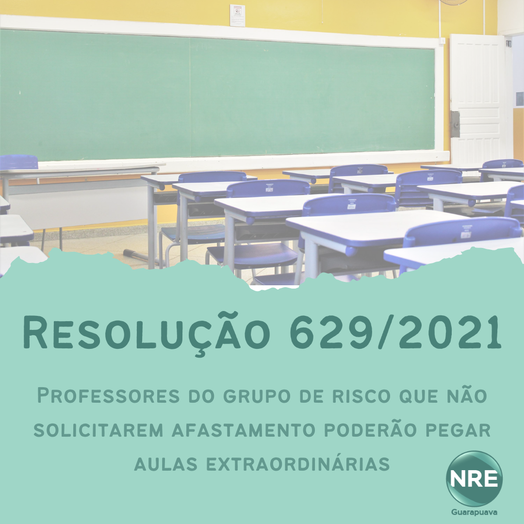 A Secretaria de Estado da Educação e do Esporte - Seed-PR publicou em 05 de fevereiro a Resolução 629/2021, que altera a Resolução 208/2021 de Janeiro de 2021. Com a alteração, professores que integram o grupo de risco da Covid-19 poderão assumir aulas extraordinárias, desde que não solicitem o afastamento das atividades por serem grupo de risco.