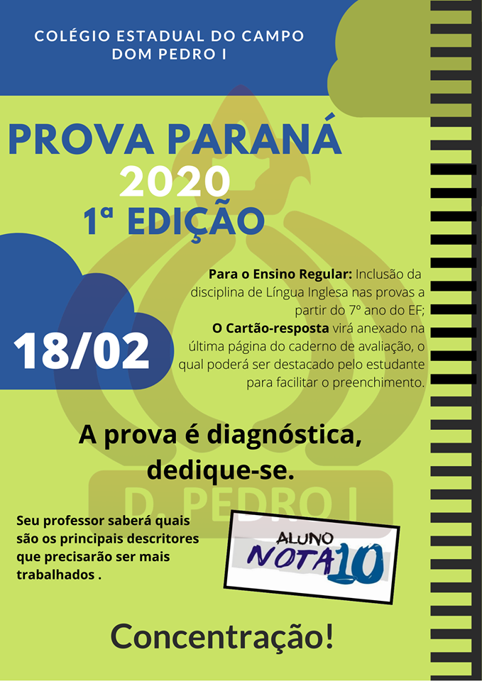 Na última terça-feira (18/02), estudantes da rede estadual de ensino, realizaram a 1ª Edição da Prova Paraná, que contemplou as disciplinas de Matemática, Língua Portuguesa e Língua Inglesa.