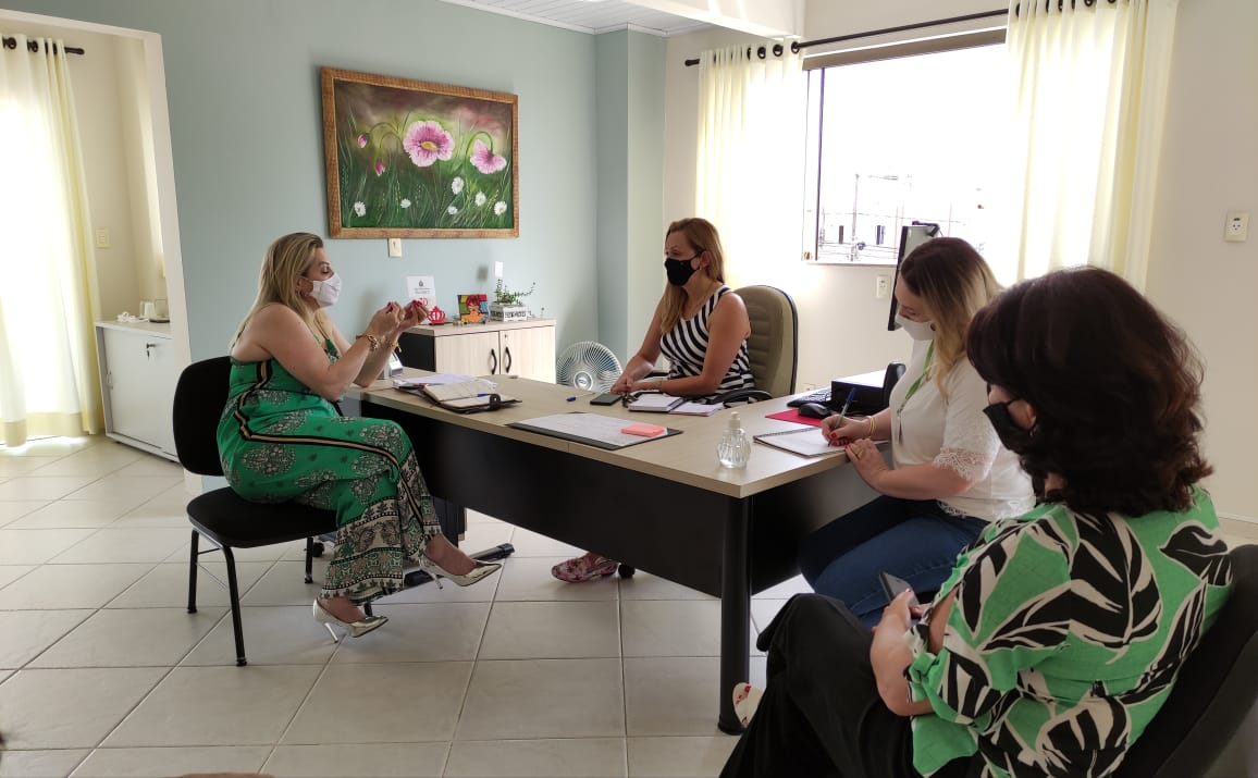 Na tarde da última quarta-feira (03), a Chefe do Núcleo Regional de Educação de Guarapuava, professora Edil Aparecida Espínola teve o prazer de receber nas dependências do NRE, a professora e Coordenadora de Diretoria de Planejamento e Gestão Escolar Adriana Kampa, juntamente a sua equipe, as professoras Maria Vanei Rigonato Oratz, Carmeli Aparecida de Freitas e Marilizi de Farias Gomes.