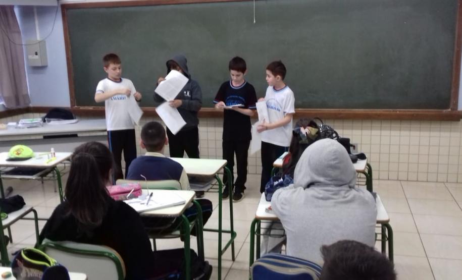 Foi um momento de os alunos exercitarem as diferentes tipologias e gêneros textuais, elaborar cartazes, realizar pesquisas e montagem de painéis. Após a leitura de várias lendas, em grupo, escolheram a que acharam mais interessante e preparam a dramatização para os colegas, recurso este que ensina a improvisar, melhora a expressão corporal e a oralidade e ainda, auxilia na ampliação do vocabulário.